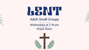 NEW THIS YEAR FOR LENT Wednesday night Adult Small Group(s) concurrent with Confirmation (7:30pm-8pm), meeting with Pastor Kent in the new Prayer and Meditation room, 160. We...