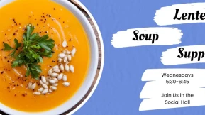Lenten Soup and Salad Suppers Join us in the Social Hall on Wednesdays during Lent for Lenten soup and salad supper from 5:30 to 6:45 pm. The soups will rotate from...