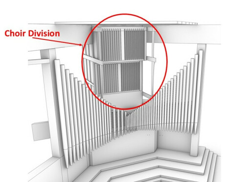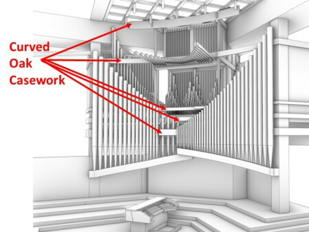 Craftsmen from Nordlie Organ Builders will be on-site the week of March 10 to begin constructing the infrastructure for the new organ in the pipe loft. They will create a floor on top of the existing platform that will protrude over the current edge, attach to the existing columns and create the arc for the façade pipes. They will also build up the swell shade walls along the back east wall, install the swell box, and meet with the electrician to finalize electrical locations.